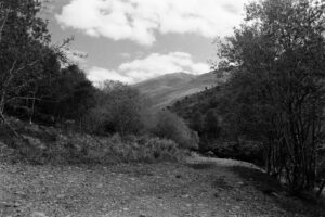 The farm was deserted. Nobody around in the farmyard itself or the cabins beside it. Nobody around, in fact, the whole time I was there, apart from the same pleasant middle-aged hill walker when I was arriving and when I was leaving the next morning.