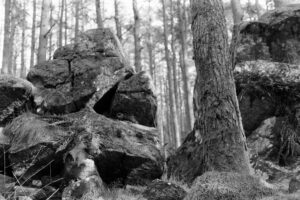 The big split boulder is the Which Stones, behind the Gallon o’ Water at the top of the Bin.