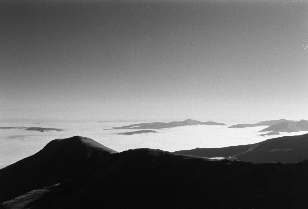 Up a strange mountain on a strange day.